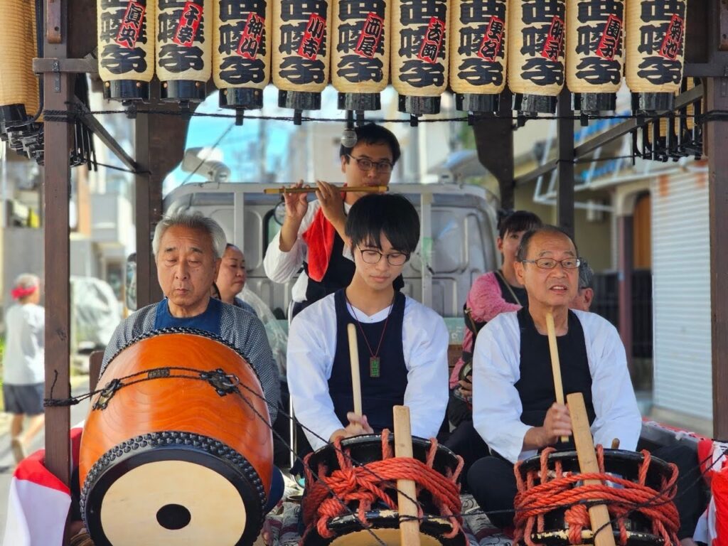 お囃子は、お神輿を担ぐ時に盛り上げるためのBGMです。